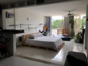 Apartamento de 97 m² tipo loft (una sola área) con un baño de lujo, el cual tiene tina….. tiene cocina casi nueva , área de ropas y tiene una terraza de 27 m², totalmente enchapada